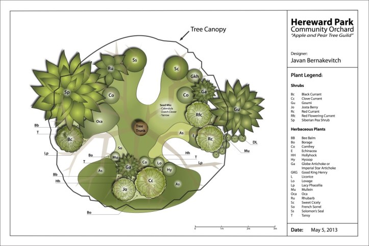 Species and functions in a fruit tree guild, Midwest Permaculture