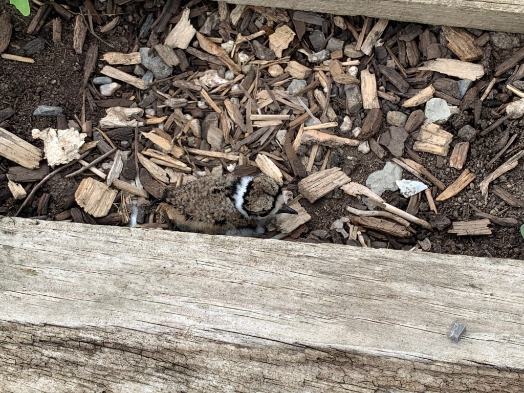 If a pair nests on a path, we mark the nest with a flag and close the path. If a pair nests in a plot, the gardener can carefully work around the nest for the 24-26 days it takes for incubation. Both parents take turns incubating and very hot days they may stand over the nest to shade the eggs. Once they hatch, the chicks leave the nest as soon as their down is dry and begin foraging for food. The parents stay with the chicks for about a month until they’re able to fly, guarding them from predators, warning of danger and brooding them at night or in bad weather.