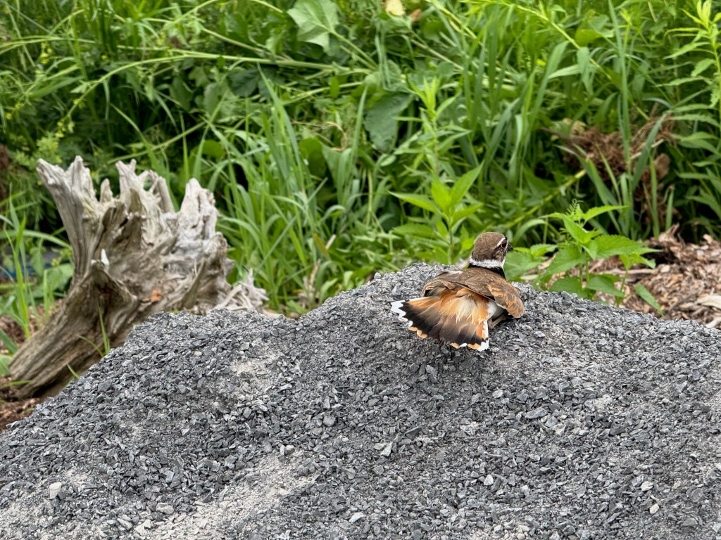 Each year we’re blessed with a nesting pair of Killdeers. Killdeers (Charadrius vociferus) are named for their distinctive “kill-deer” call. Vociferus, as you might guess, is Latin for “shouting” or “yelling.” Killdeer are definitely noisy birds!