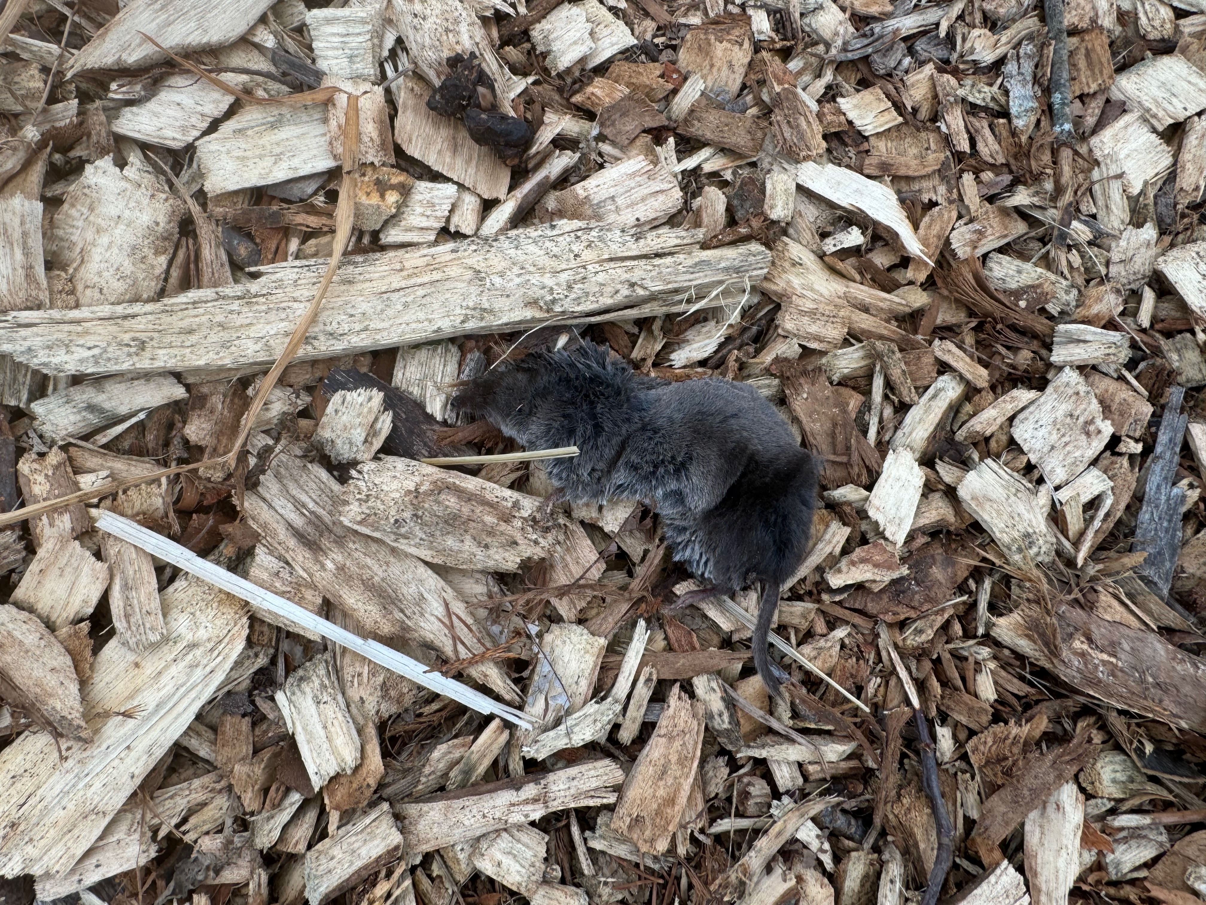 While we don’t have a rodent problem, we do have a rodenticide problem. In 2024, the city installed rodent bait stations at the Sharing Centre and Centre 70, which we discovered after finding numerous dead voles, shrews, a Robin and several Goldfinches. While shrews are predators who don’t consume bait, one theory is that they consumed poisoned slugs or snails or carrion of voles who had consumed bait.