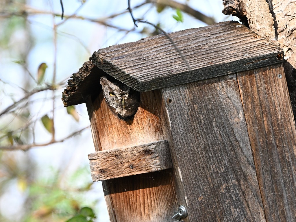 Can you spot the snow? Eastern Screech Owls are year-round residents who will also roost in nest boxes over the winter.